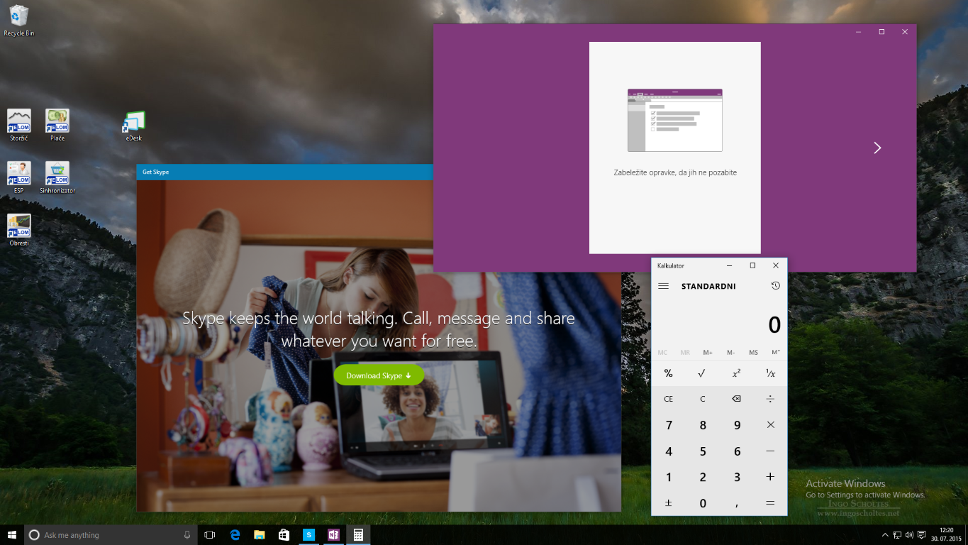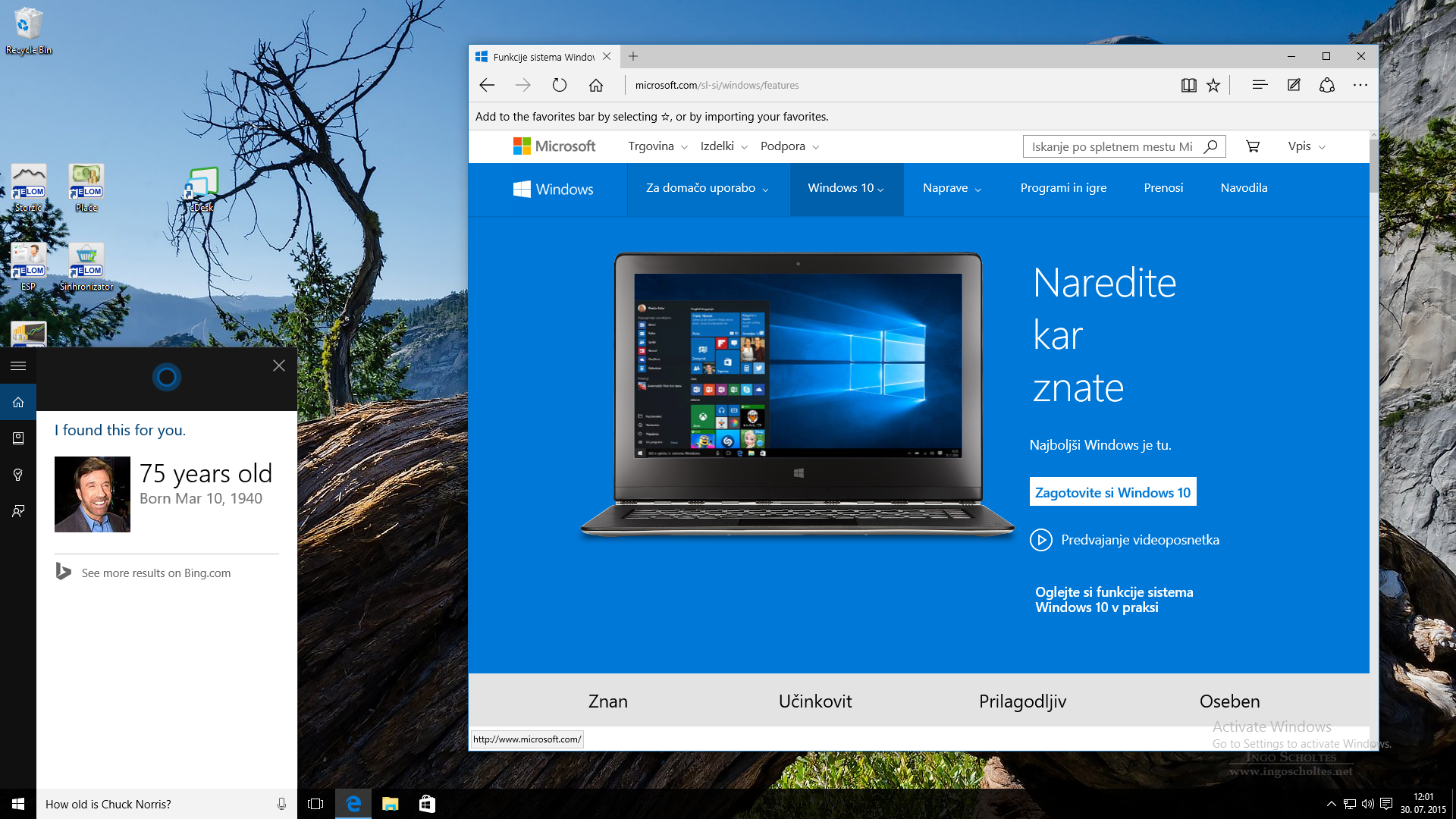 Testirali smo ga že tudi sami in naši programi Storžič delujejo brez težav. Manjše težave se lahko pojavijo če boste uporabljali novi brskalnik Edge, saj nekatere komponente za delo s certifikati še ne delujejo. Aktivna pomočnica Cortana zaenkrat še ni na voljo v slovenščini, lahko pa jo uporabljate v angleškem jeziku, s tem da morate najprej spremeniti regionalne nastavitve naprimer na ZDA (USA) ali katero drugo podprto območje.