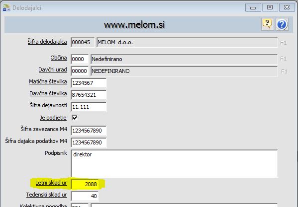 Pri pripravi je potrebno paziti na nastavitev letnega sklada ur, ki za leto 2016 znaša 2088 ur. Podatek se nahaja v Podatkih delodajalcev (Podatkovna baza -> Delodajalci – podatki za plače). Pred pripravo podatkov spremenite letni sklad ur na vrednost za leto 2016 (=2088 ur), po oddaji pa ga popravite nazaj na vrednost za leto 2017 (=2080 ur), ker se uporablja pri vsakokratni pripravi REK-1 obrazca.