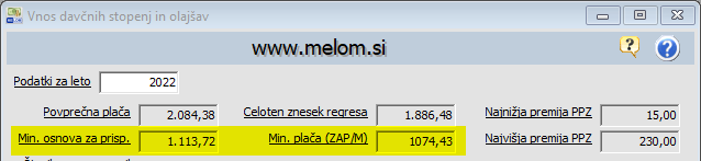 Prav tako se spremeni najnižja osnova za prispevke za socialno varnost zaposlenih, ki v obdobju 1.1.2022 – 28.2.2022 ponovno znaša 1.113,72 EUR (poteče obdobje znižanja po ZDUOP). Najnižja osnova se bo ponovno določila po 1.3.2022, ko bo znana povprečna plača za leto 2021 (osnova znaša 60% povp. plače – več lahko pogledate tukaj) .